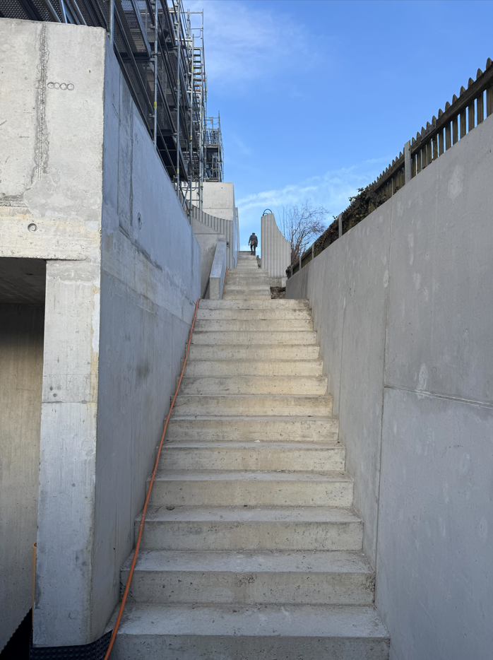 Planung von zwei Terrassenhäusern und einem Einfamilienhaus mit Pool. Anspruchsvolle Baugrubensituation auf 500 m² mit einer 13 m hohen Nagelwand. Der Rohbau wurde Ende 2025 erfolgreich abgeschlossen.
